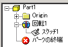 ![]() 画面左下のブラウザを見ると、[回転1]フィーチャが追加されています。+ボタンをクリックすると、中には[スケッチ1]があります。 |