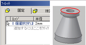![]() 次に、左図を参照してパーツのエッジにフィレットを追加します。 |