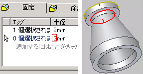 数値を「3」と入力してEnterし、R3のフィレットを追加するエッジを選択します。 |