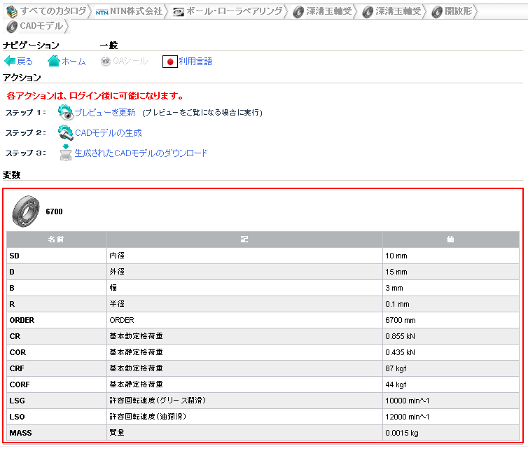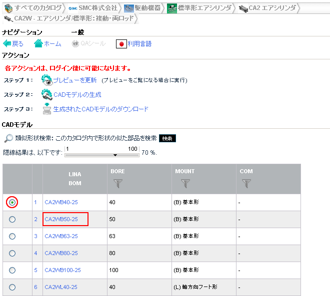 As soon as a concrete row has been determined, a 3-D view and dimensional drawings are loaded under CAD model preview.