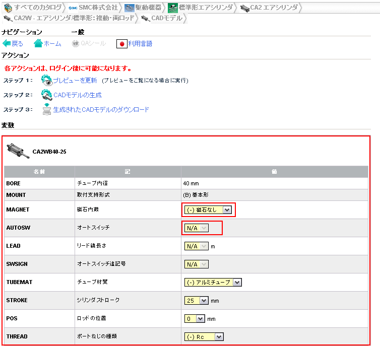 In order to reach the variable view, click on the part link or preview image.