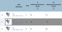 Selection by table rows (CAD model preview is also displayed). |