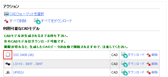 -> Upon clicking CAD model generation, the system starts creating the 3D model for download. The generated model is displayed in the Available CAD models area.