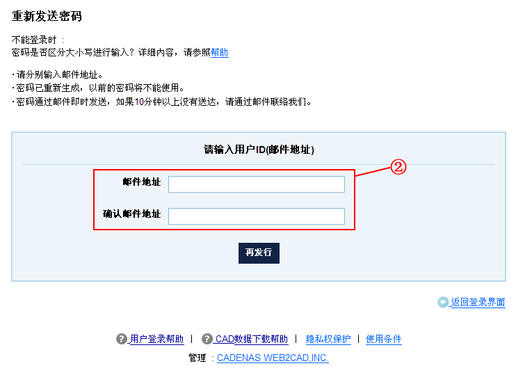 ② 在下图界面输入邮件地址,然后点击【再发行】按钮。
