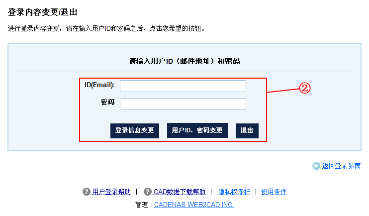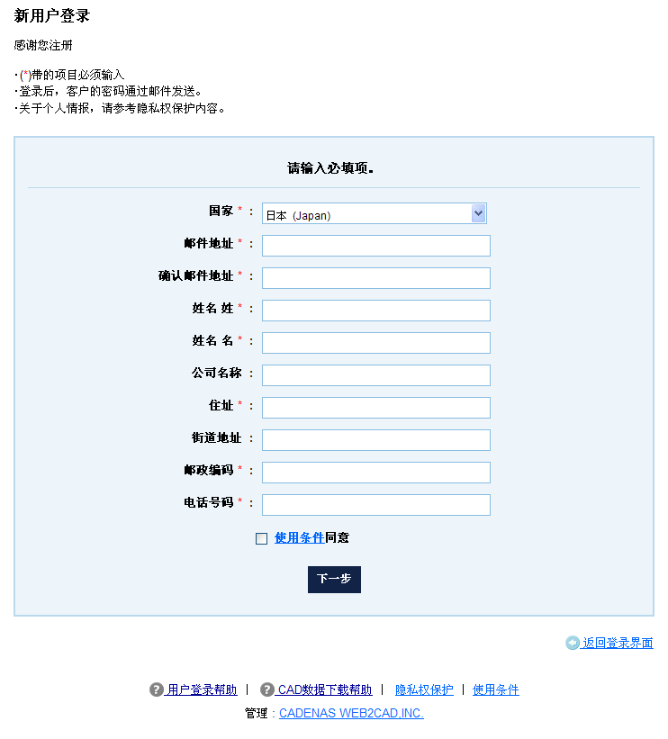 ※ 客户的用户名与web2CAD的用户名相同,所以有web2CAD用户名的用户不需要再次注册新用户。